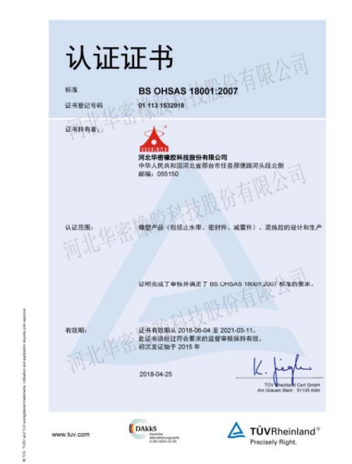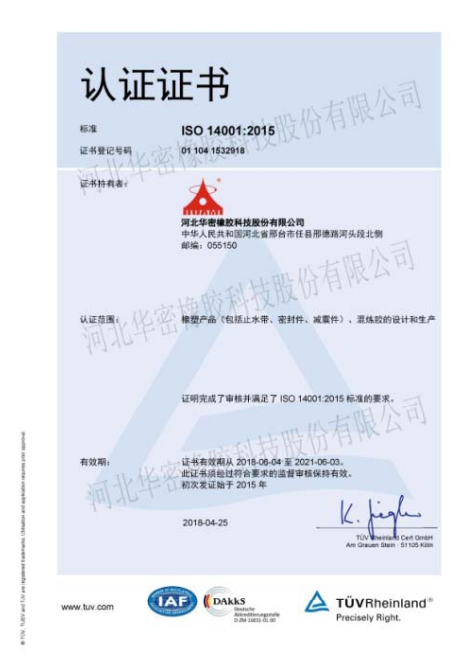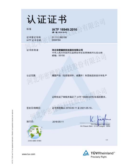 河北华密橡胶科技股份有限公司始建于1989年,是生产特种混炼胶、橡胶减震制品和橡胶密封件的专业厂家。 公司位于河北省邢台市任县经济开发区(京港澳高速公路东四公里处),交通便利。华密占地约 100,000 ㎡ 建筑面积达 60,000. 拥有员工近 500 . 华密工程技术中心被评定为省级“橡胶密封与减震工程技术中心”,且通过了德国莱茵的 ISO9001, ISO14001OHSAS18001IATF16949 以及国军标GJB9001C等体系认证。.